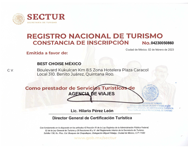 Gracias a su agencia, tuvimos unas vacaciones inolvidables en la Riviera Maya. Excelente atención y recomendación de tours.